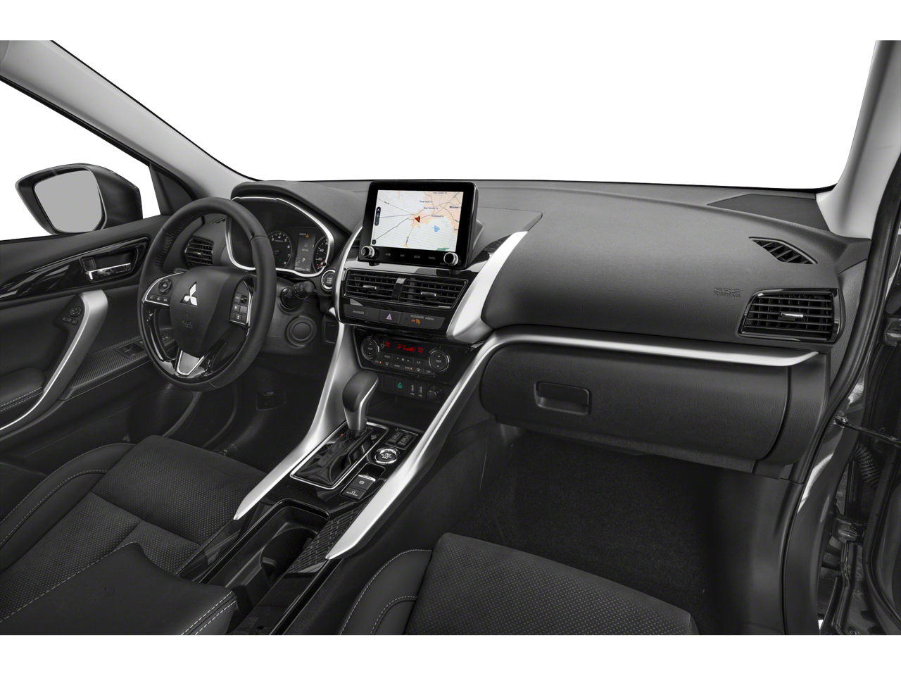 This vehicle comes with the following features: Welcome Package (Carpet Floor Mats and Reversible Cargo Mat), 4-Wheel Disc Brakes, 6 Speakers, ABS brakes, Accessory Eclipse Cross All-Weather Floor Mat Set, Accessory Front & Rear Mud Guard Set, Accessory Tonneau Cover, Air Conditioning, Alloy wheels, AM/FM radio: SiriusXM, Android Auto & Apple CarPlay, Auto High-beam Headlights, Auto-dimming Rear-View mirror, Automatic temperature control, Blind Spot Warning, Brake assist, Bumpers: body-color, Driver door bin, Driver vanity mirror, Dual front impact airbags, Dual front side impact airbags, Electronic Stability Control, Emergency communication system, Exterior Parking Camera Rear, Four wheel independent suspension, Front anti-roll bar, Front Bucket Seats, Front Center Armrest, Front dual zone A/C, Front fog lights, Front reading lights, Heated door mirrors, Heated Front Bucket Seats, Heated front seats, Illuminated entry, Knee airbag, Low tire pressure warning, Navigation System, Occupant sensing airbag, Outside temperature display, Overhead airbag, Overhead console, Panic alarm, Passenger door bin, Passenger vanity mirror, Power door mirrors, Power driver seat, Power Liftgate, Power steering, Power windows, Radio data system, Radio: AM/FM 8.0 Nav System w/Smartphone-Link, Rain sensing wipers, Rear anti-roll bar, Rear seat center armrest, Rear window defroster, Rear window wiper, Remote keyless entry, Security system, Speed control, Speed-sensing steering, Split folding rear seat, Spoiler, Steering wheel mounted audio controls, Tachometer, Telescoping steering wheel, Tilt steering wheel, Traction control, Trip computer, Turn signal indicator mirrors, and Variably intermittent wipers. 25/26 City/Highway MPG