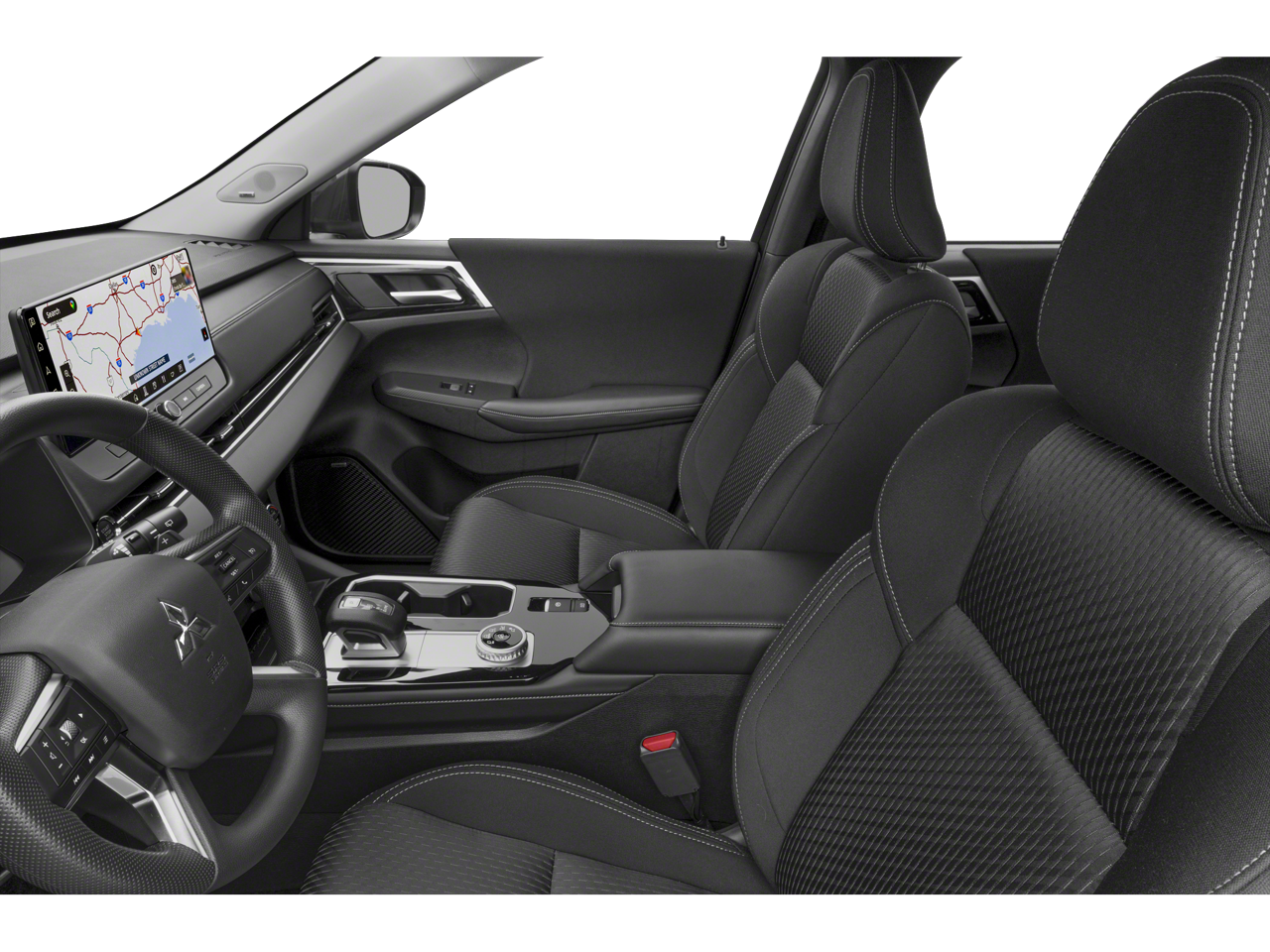 This vehicle comes with the following features: 18 Alloy Wheels, 3rd row seats: split-bench, 4-Wheel Disc Brakes, 8 Speakers, ABS brakes, Air Conditioning, Alloy wheels, AM/FM radio: SiriusXM, Android Auto & Apple CarPlay, Auto High-beam Headlights, Auto-dimming Rear-View mirror, Automatic temperature control, Blind Spot Warning, Brake assist, Bumpers: body-color, Cloth Fabric Seating Surfaces, Driver door bin, Driver vanity mirror, Dual front impact airbags, Dual front side impact airbags, Electronic Stability Control, Emergency communication system: Mitsubishi Connect w/ 24-month trial, Exterior Parking Camera Rear, Four wheel independent suspension, Front anti-roll bar, Front Bucket Seats, Front Center Armrest w/Storage, Front dual zone A/C, Front reading lights, Fully automatic headlights, Illuminated entry, Knee airbag, Low tire pressure warning, Navigation System, Occupant sensing airbag, Outside temperature display, Overhead airbag, Overhead console, Panic alarm, Passenger door bin, Passenger vanity mirror, Power door mirrors, Power steering, Power windows, Radio data system, Radio: AM/FM 12.3 Navigation w/Smartphone-Link, Rear anti-roll bar, Rear Parking Sensors, Rear seat center armrest, Rear side impact airbag, Rear window defroster, Rear window wiper, Reclining 3rd row seat, Remote keyless entry, Security system, Speed control, Speed-Sensitive Wipers, Split folding rear seat, Spoiler, Steering wheel mounted audio controls, Tachometer, Telescoping steering wheel, Tilt steering wheel, Traction control, Trip computer, Turn signal indicator mirrors, and Variably intermittent wipers.