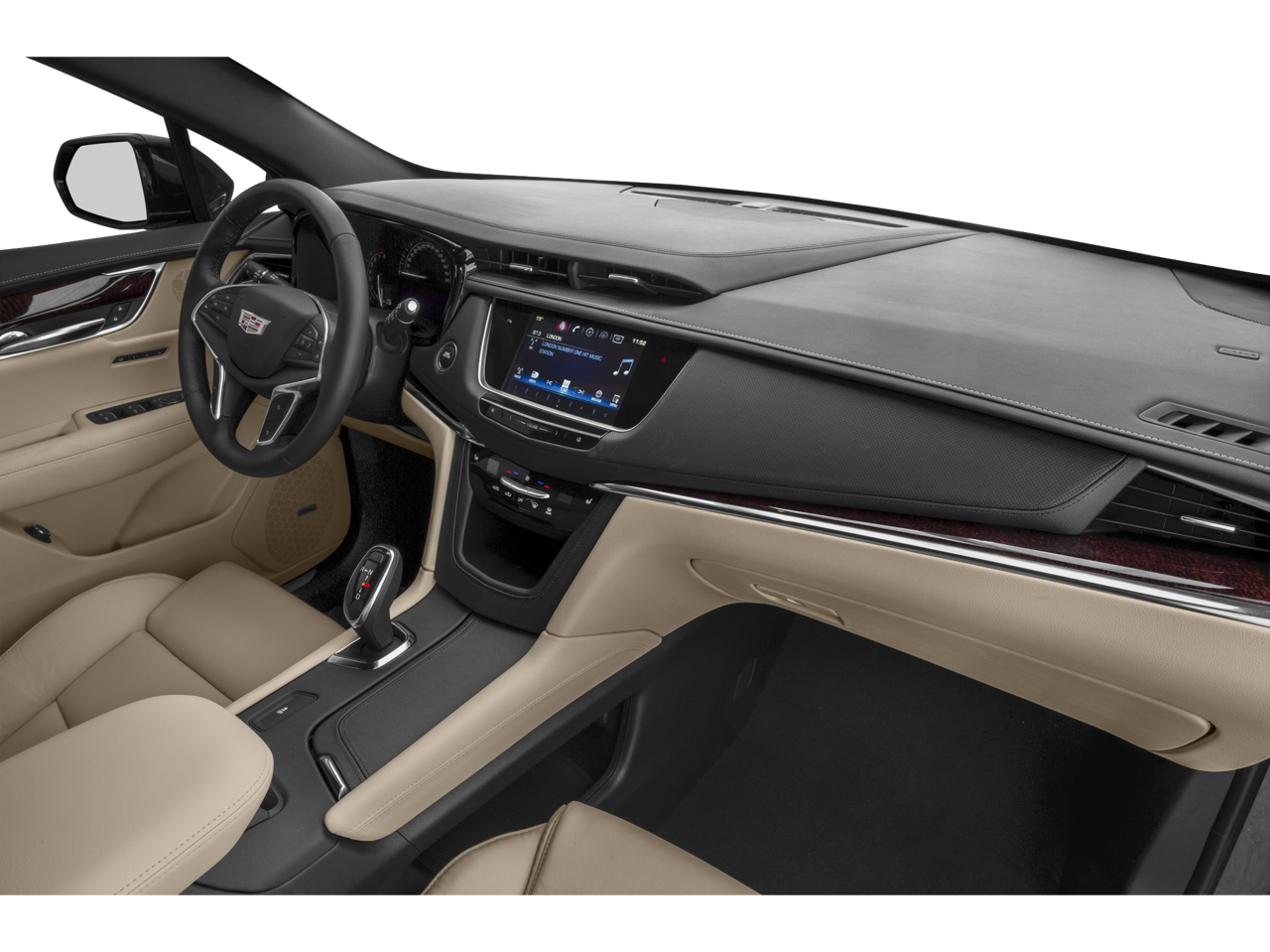 - Cadillac user experience, AM/FM stereo with 8" diagonal color information display, four USB ports, two auxiliary power outlets, auxiliary input jack, Natural Voice Recognition, Phone Integration for Apple CarPlay and Android Auto capability for compatible phone, Connected Apps and Teen Driver (Upgradeable to (IO6) Cadillac user experience with Embedded Navigation.)