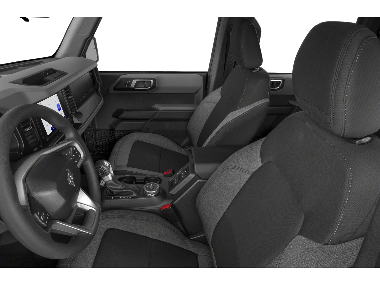 2-Door Intelligent Access w/Lock/Unlock, 4-Wheel Disc Brakes, 4.27 Final Drive Ratio w/Rear Locking Differential, 6 Speakers, ABS brakes, Alloy wheels, AM/FM radio: SiriusXM with 360L, AM/FM Stereo, Ambient Footwell Lighting, Auto High-Beam Headlamps, Auto High-beam Headlights, Auto-Dimming Interior Rear-View Mirror, BLIS Blind Spot Information System, Brake assist, Cloth Bucket Seats, Compass, Connected Navigation, Delay-off headlights, Dr & Pass Illuminated Sliding Visor Vanity Mirrors, Driver door bin, Driver vanity mirror, Dual front impact airbags, Dual front side impact airbags, Dual-Zone Electronic Automatic Temperature Control, Emergency communication system: 911 Assist, Enhanced Voice Recognition, Equipment Group 222A Mid Package, Exterior Parking Camera Rear, Front anti-roll bar, Front Bucket Seats, Front Center Armrest, Front fog lights, Front reading lights, Front Row Heated Seats, Front wheel independent suspension, Fully automatic headlights, Heated door mirrors, Illuminated entry, Integrated roll-over protection, Lane-Keeping System, Leather Shift Knob, Low tire pressure warning, Occupant sensing airbag, Outside temperature display, Overhead airbag, Overhead console, Panic alarm, Passenger door bin, Passenger vanity mirror, Power door mirrors, Power Outlet - Back Side of Center Floor Console, Power steering, Power windows, Pre-Collision Assist w/Automatic Emergency Braking, Radio data system, Rear-View Camera, Remote keyless entry, Remote Start System, Reverse Sensing System, Security system, SiriusXM Radio w/360L, Speed control, Split folding rear seat, Steering wheel mounted audio controls, SYNC 4, Tachometer, Telescoping steering wheel, Tilt steering wheel, Traction control, Trip computer, Variably intermittent wipers, Wheels: 17 Carbonized Gray-Painted Aluminum.