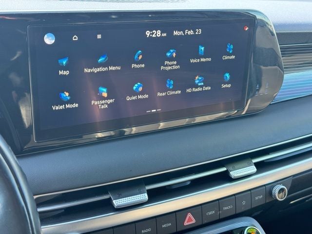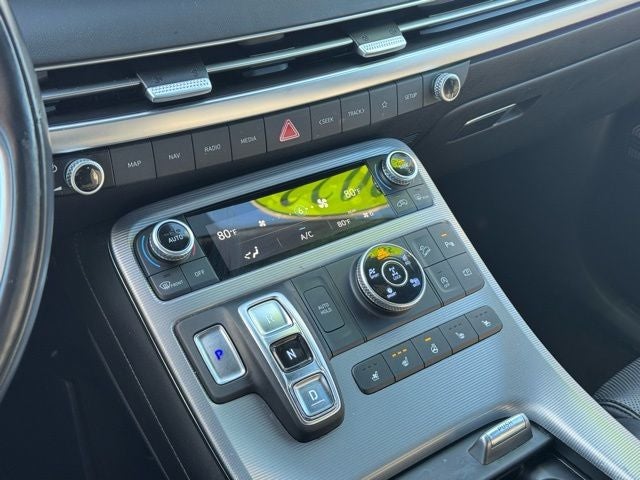 12 Speakers, 3.648 Axle Ratio, 3rd row seats: split-bench, 4-Wheel Disc Brakes, ABS brakes, Air Conditioning, Alloy wheels, AM/FM radio: SiriusXM, Apple CarPlay & Android Auto, Auto High-beam Headlights, Auto-dimming door mirrors, Auto-dimming Rear-View mirror, Auto-leveling suspension, Automatic temperature control, Brake assist, Bumpers: body-color, Cargo Blocks, Cargo Cover/Screen, Cargo Net, Cargo Package, Cargo Tray, Carpeted Floor Mats, Compass, Delay-off headlights, Driver door bin, Driver vanity mirror, Dual front impact airbags, Dual front side impact airbags, Electronic Stability Control, Emergency communication system: Blue Link Connected Car Service (3-year complimentary subscription), Exterior Parking Camera Rear, First Aid Kit, Four wheel independent suspension, Front anti-roll bar, Front Bucket Seats, Front Center Armrest, Front dual zone A/C, Front reading lights, Fully automatic headlights, Garage door transmitter: HomeLink, harman/kardon® Speakers, Heads-Up Display, Heated & Ventilated Front Bucket Seats, Heated door mirrors, Heated front seats, Heated rear seats, Heated steering wheel, Illuminated entry, Knee airbag, Low tire pressure warning, Memory seat, Navigation System, Occupant sensing airbag, Option Group 01, Outside temperature display, Overhead airbag, Overhead console, Panic alarm, Passenger door bin, Passenger vanity mirror, Power door mirrors, Power driver seat, Power Liftgate, Power moonroof, Power passenger seat, Power steering, Power windows, Premium Nappa Leather Seat Trim, Radio data system, Radio: AM/FM/MP3 Premium Audio System, Rain sensing wipers, Rear air conditioning, Rear anti-roll bar, Rear audio controls, Rear reading lights, Rear side impact airbag, Rear window defroster, Rear window wiper, Reclining 3rd row seat, Remote keyless entry, Security system, Speed control, Speed-sensing steering, Splash Trim, Split folding rear seat, Spoiler, Steering wheel mounted audio controls, Tachometer, Telescoping steering wheel, Tilt steering wheel, Traction control, Trip computer, Turn signal indicator mirrors, Variably intermittent wipers, Ventilated front seats, Ventilated rear seats, Wheel Locks, Wheels: 20 x 7.5J Calligraphy Exclusive Alloy.